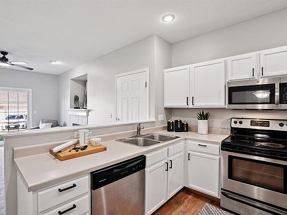 Inside, enjoy an open floor plan perfect for entertaining. Curl up by the fireplace on cozy winter nights, or step out the sliders to your private patio for summer BBQs. The kitchen is well-equipped and all appliances stay—including the washer and dryer—for a truly turnkey home.