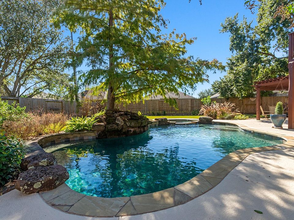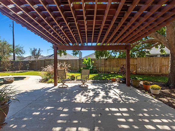 Welcome to 1602 Old Orchard Lane, a traditional residence in the highly sought-after Mystic Village at Lake Mija community. This spacious 4,541 sq. ft. home features 5/6 bedrooms, 3.5 baths,and sits on a generous 14,985 sq. ft. cul-de-sac lot.Step inside to soaring high ceilings and an expansive, multi-zoned floor plan that includes a Formal Living, Office, and Dining area with beautiful hardwood floors,a large Den (20x18),an upstairs Game Room (29x13), an Extra Room (25X12), and a dedicated Office—also finished with hardwood flooring. The luxurious downstairs Primary Bedroom (17x17) offers a spa-like bath with a Jetted Tub and separate shower.The home is equipped with a new A/C unit installed just 1 year ago and a well-maintained roof that’s only 8 years old.Out back, enjoy a private heated pool,a full outdoor kitchen, and a refreshing balcony to soak in the Seabrook air. Zoned to the acclaimed CCISD, this home blends classic style, modern convenience, and resort-like coastal living.
