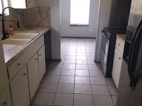 Corner lot in nice neighborhood, near shopping, 3 bedrooms, 2 full bathrooms, living room, large den or second living area (can be used for recreation or 4th bedroom), galley kitchen, stove, dishwasher, large refrigerator, fresh central air conditioning & heat, utility room with washer dryer connections,, fenced yard, and large driveway.