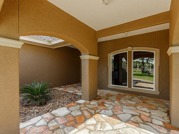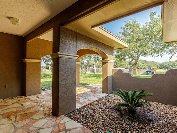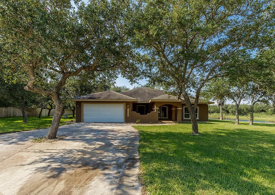 Mediterranean style stucco single-story home gracefully tucked under the famous Rockport-Fulton Live Oaks. This custom-built home is packed w/spectacular features - open floor plan, tile throughout, crown molding, recessed lights, wired for outdoor sound and so much more. Split 3 bedrooms and 2 baths in a sprawling 1,814 sq ft. Bonus area can be used as formal dining, office, or whatever your life needs. Expansive breakfast bar, stainless appliances, pantry, gorgeous cabinets, eat-in area, just right for entertaining. The master ensuite has two closets, a garden tub, and a walk-in shower. Enjoy coastal breezes from your serene extra large covered patio. Watch and appreciate the abundance of wildlife attracted to your own private pond. On 1.1 acres, there is plenty of room for boat(s) and recreational vehicle parking. Quiet, private location just a few blocks from Aransas Bay, Castro Nature Sanctuary, Fulton waterfront park/pier, shops, & restaurants. No HOA. Come enjoy the beach house
