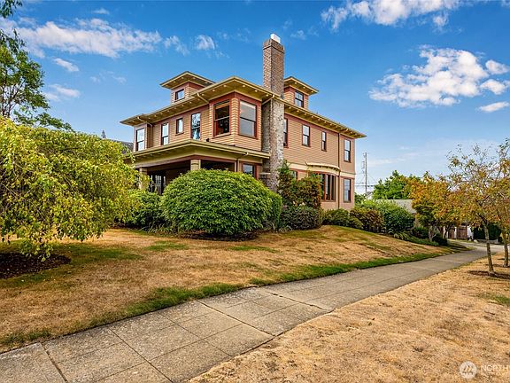 Welcome to this Historic North Everett home, perched on a large corner lot with sweeping views of the Sound, mountains & jetty. This home blends timeless craftsmanship & modern updates. Large front porch & Dutch front door lead into a grand entryway. Oversized living room opens to dining room w/picture windows & office. Updated kitchen with top-end appliances flows to a deck overlooking the backyard & views. Upstairs a spacious primary suite w/west views, en-suite bath, double closets & deck. Three oversized bedrooms feat. abundant natural light. Stairs lead to an unfinished third floor full of potential. Detached 2-car garage & basement provide versatile space for storage or expansion. Nearby the new Waterfront, Grand Ave Park & Downtown.