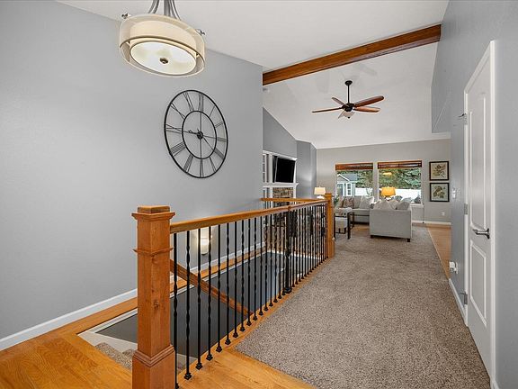 Striking gas fireplaceBonus roomPanoramic viewsFully finished lower levelPrivate flat backyardRich hardwood floorsTimeless design