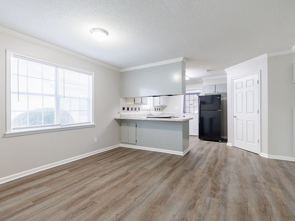 Fenced yardEat-in kitchenBack patioVinyl plank flooring