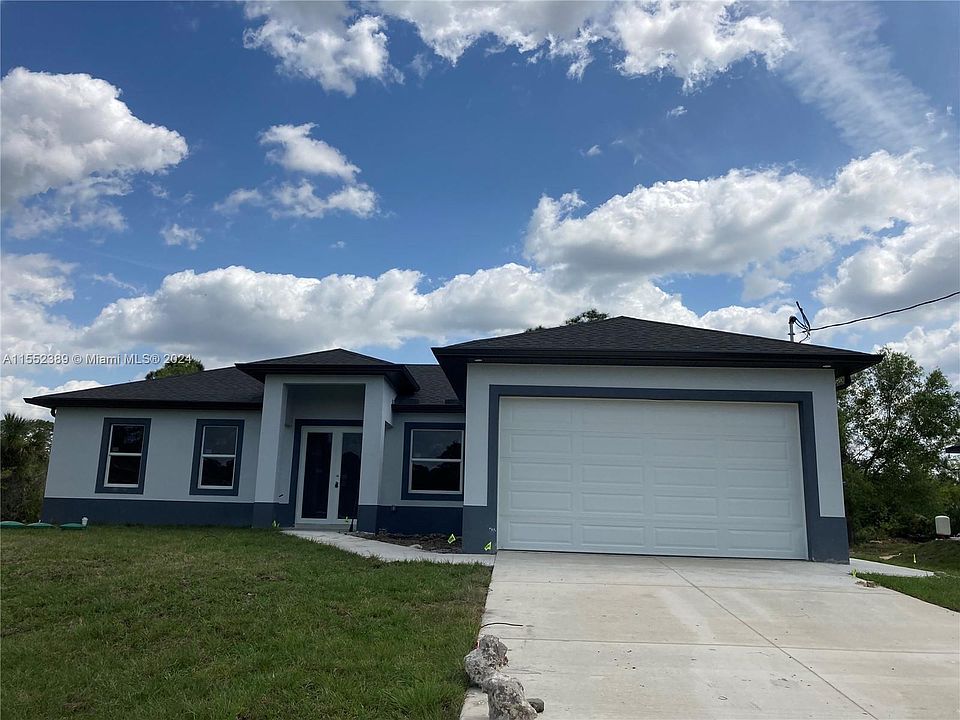 CALL THIS BEAUTIFUL HOME YOUR OWN!!FROM THE COVERED ENTRANCE THRU HURRICANE IMPACT-PROOF DOUBLE DOORS THAT LEAD YOU INTO AN EXPANSIVE OPEN-PLAN LIVING, DINING ,AND KITCHEN AREA THAT BOAST A FREE STANDING ISLAND,S/S APPLIANCES, PRIMARY SUITE FEATURES PLENTY CLOSET SPACE,DUAL SINK GRANITE VANITY,BIG SHOWER, 2 SECONDARY BEDROOMS SHARING A FULL SIZE BATHROOM,OFFICE-DEN,2 CAR GARAGE, COVERED LANAI FOR OUTSIDE LIVING ON YOUR OWN HALF-ACRE BACKYARD PERFECT FOR FAMILY GATHERINGS. ALL THIS IN THE FAST GROWING AREA OF LEHIGH ACRES WHICH IS LOCATED WITHIN THE CAPE CORAL-FORT MYERS METROPOLITAN AREA, JUST FEW MILES FROM BLUE GULF BEACHES, PARKS, AIRPORT, GOLF COURSES AND MUCH, MUCH MORE!!