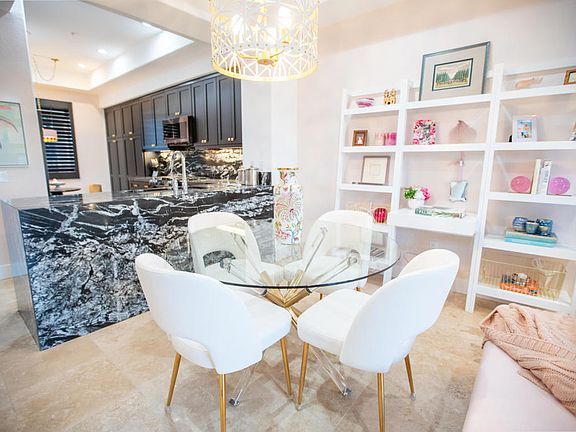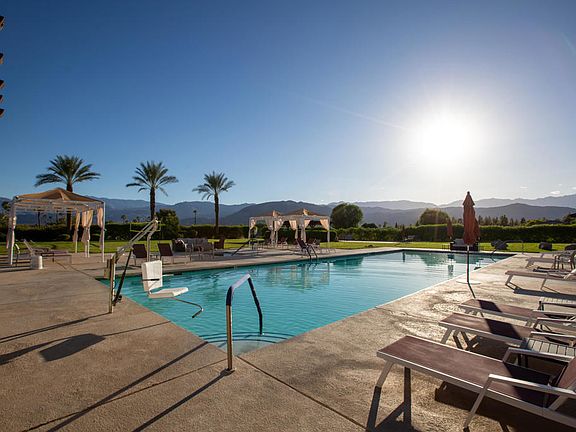 A Rare Gem in Villa Portofino - Where Elegance Meets Comfort! Welcome FIRST CLASS!Step into a world of refined luxury with this newly reimagined home, showcasing a $140,000 designer remodel that blends modern sophistication with effortless comfort. Every detail has been thoughtfully curated--brand new cabinetry, stone countertops, premium fixtures, and high-end appliances create an environment designed for those who expect the very best.At the heart of the home, a striking black-and-white marble waterfall island anchors the chef's kitchen, complemented by professional-grade stainless steel appliances. Custom storage solutions, organized closets, and a mirrored barn door concealing the washer and dryer enhance both beauty and functionality. The spa-inspired bath features bespoke tilework, a freestanding soaking tub, and an ambiance that rivals the finest retreats.Seamless indoor-outdoor living awaits on the private patio, complete with motorized sun shades, a barbecue area, and panoramic mountain views--ideal for both relaxing and entertaining. Offered fully furnished, this residence invites you to simply arrive and begin enjoying the good life.Villa Portofino offers an unmatched lifestyle with a 30,000 sq. ft. clubhouse boasting two restaurants, a private theater, fitness center, game room, pool & spa, bocce ball, shuffleboard, and a vibrant social calendar. HOA dues cover cable, water, trash, landscaping and clubhouse access.Located minutes from El Paseo's luxury shopping and dining, Eisenhower Medical Center, and Bristol Farms, this is not just a home--it's a statement of style and sophistication.