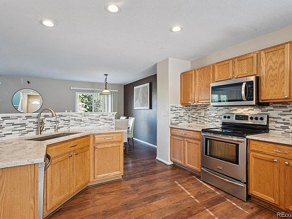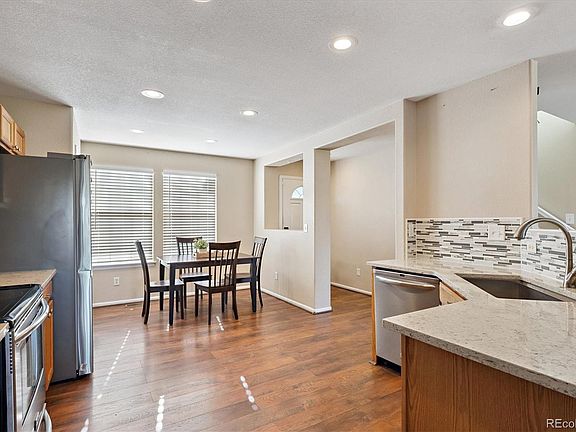 Live Your Best Life in Southcreek! Welcome to your dream home tucked away on a prime cul-de-sac lot in the sought-after Southcreek neighborhood — where comfort, style, and location collide! Come inside and fall for the bright, open-concept kitchen, complete with crisp quartz counters, a sleek tile backsplash, newer stainless steel appliances (including a brand-new fridge with ice ball maker!), cabinet lighting, a walk-in pantry, and a sun-soaked breakfast nook — ideal for morning coffee or midnight cravings. Kick back in the spacious living room with a cozy gas fireplace for movie nights, or host dinner parties in your open dining area. A chic powder room and laundry zone with linen closet make the main floor as functional as it is fabulous. Head upstairs and be greeted by a versatile loft — think home office, play space, or chill zone — plus a primary suite with an updated 3/4 bath, dual-sink vanity, and a walk-in closet. Two additional roomy bedrooms and a full bath complete the upper level. Ready to entertain? Head to the finished basement — your new hangout haven — with a built-in wet bar, fridge, wine fridge, game/family room, 3/4 bath, and a workshop with built-in benches. Major updates include a radon detection system (2021), a new furnace with humidifier and electrostatic filters (2021 & 2025), and a roof repair and sliding door replacement following hail damage (June 2024), house painted (2025) and newer windows = peace of mind for years to come! Outside, the fully fenced backyard with large patio is BBQ-ready and perfect for stargazing soirées or puppy playtime. All this in the Cherry Creek School District, near E-470, Parker Road, Broncos Training Camp, and steps from the Cherry Creek Regional Trailhead. Added bonus: a whole lineup of smart home features- automated door locks, garage door opener, Ecobee thermostat, RainMachine sprinkler system, Ring doorbell, and WiFi-enabled LED lighting. This home has it all — don’t let it slip away!
