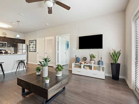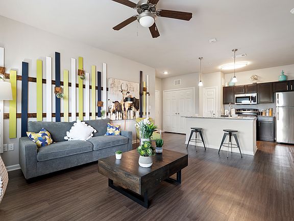 - Exterior features: Business Center, Coffee Bar, Game Room, Garden, Granite Countertops, Indoor & Outdoor Storage Closets, Kitchen Islands, Mocha Wood Cabinetry, Pet Park, Poolside Fire Pit and Pavilion, Stainless Steel Appliances, Volleyball Court, Walk-In Bedroom Closet, Walking Trails Behind Property, Yoga/Spin Studio