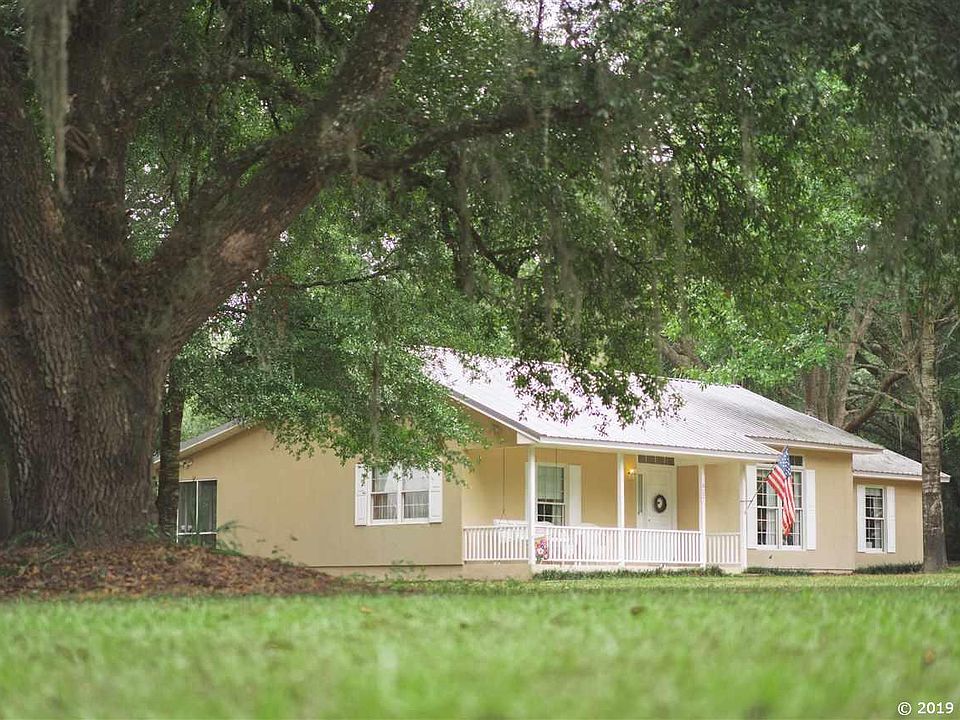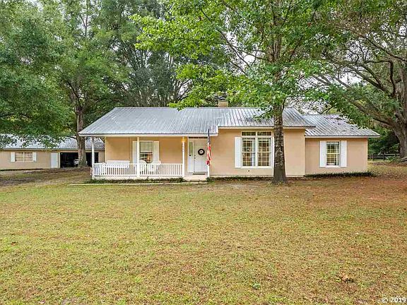 PEACE and SERENITY in beautiful Alachua! This well-built 3 bedroom/2 bathroom home plus detached garage/possible in law suite on 5.31 gorgeous acres not far from Gainesville is now available for someone looking to live in an amazing country setting with the convenience of a short drive to the city limits. Located just a few minutes from Jonesville, this custom home built with superb construction and extra insulation features desirable split plan w/three spacious bedrooms, large living area w/wood burning stove that will heat the entire home, dining room, screened in porch, exterior front porch that spans a good portion of front of home, and a detached, 1,200 sq. ft. garage/workshop (can fit an RV) with full bath that can be converted into an in law suite if desired. Interior property assets include high end kitchen GE appliances w/warranties, stunning Mullican Hillshire Hickory natural wood flooring recently installed in majority of home and newer carpet in bedrooms, alarm systemProperty contains established, majestic trees that have just been trimmed, well and septic, and lots of green space. Average electric bills with Clay Electric under $100 per month! Metal roof, newer HVAC (3 yrs old) Windstream internet. Welcome home!