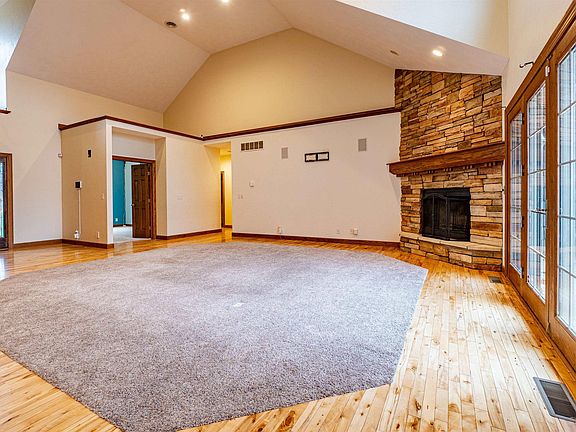 WATER FRONT DREAM HOME WITH 4 ACRES!! Look no further than this gorgeous 6 bedroom, 4 bath, 1.5 story home with a waterfront view. This luxurious home features a huge kitchen with custom cabinetry, Corian countertops and a breakfast bar. Huge master suite with walk in closet, built ins and The L-shaped 4 stall garage offers an incredible amount of space for all your storage needs. The large back deck, patio and huge yard create the perfect place to entertain family and friends. This property has a lake front dock to keep all your lake toys to enjoy the lake all summer long. Recent updates include: 2 water heaters, water softener, water filtration system and deck. Recently cleared out over a half acre of trees to create a view of the lake and open up the front yard. You'll find endless potential to add more living space to the huge partially finished walkout basement. Call today to schedule a private showing of this stunning home!