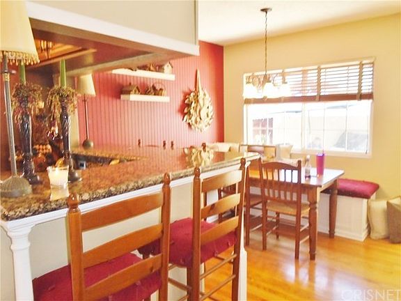 This is a wonderfully decorated and maintained property in desirable Granada Hills area close to shopping, freeways, restaurants. Move in condition inviting front entry leads to warm living area featuring hardwood floors, textured ceilings, dramatic stone front fireplace with gas logs and custom cabinets, large glass doors offering view of pool area. and adjoining dining area. Gorgeous redone kitchen featuring newer stainless appliances, granite counters, double door refrigerator and DCS 5 burner stove. Really amazing attention to detail when redone with new cabinets, double stainless sink with Grohe faucet. pantry with pull-out shelves.etc. Central air with new ducting done approximately 2 years ago. Outstanding yard features newly replastered and retiled pool/spa. nice grass area, large shed and large patio with retractable awning. Truly is one of those have to see to appreciate homes.