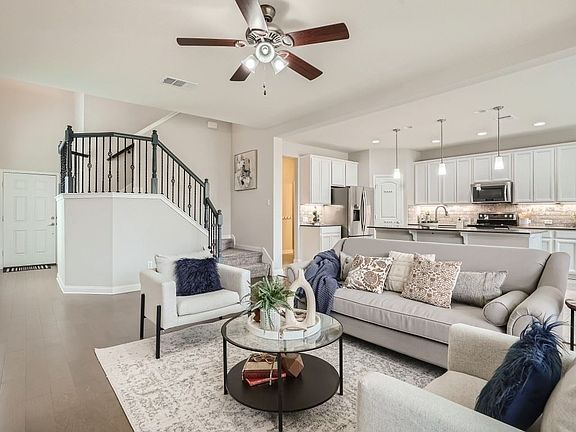 This stunning home is situated in the highly sought-after Preston Village, boasting exceptional schools and an incredibly low tax rate of 1.6872. With 2,146 square feet, 3 bedrooms, and 2.5 bathrooms, this property offers an inviting and spacious open-concept floor plan that exudes luxury and elegance. A contemporary design awaits, complete with beautiful quartz countertops, stylish white cabinets, and undercabinet and pendant lighting that perfectly accentuate the space. Enjoy the convenience of recessed LED lighting and high ceilings, along with wrought iron railings and upgraded wood floors that lend an air of sophistication to the home. Relax and entertain in style on the extended covered patio or in the charming breakfast nook, while a bonus room adds an extra dimension of functionality. Premium stainless steel appliances, cabinet shelving pull outs, custon window shades & 2" blinds, stone, brick, and Hardie-shake exterior, pest tubes in walls, and a covered porch all contribute to the home's impeccable aesthetic, complemented by the beautifully landscaped yard. Equipped with child safety features, this property is perfect for residents who can also take advantage of the community pool and playscape. Contact the Listing Agent today to schedule a viewing and experience the epitome of Austin living. Round Rock ISD. Come to the Open House Sat. 4/15 12-3