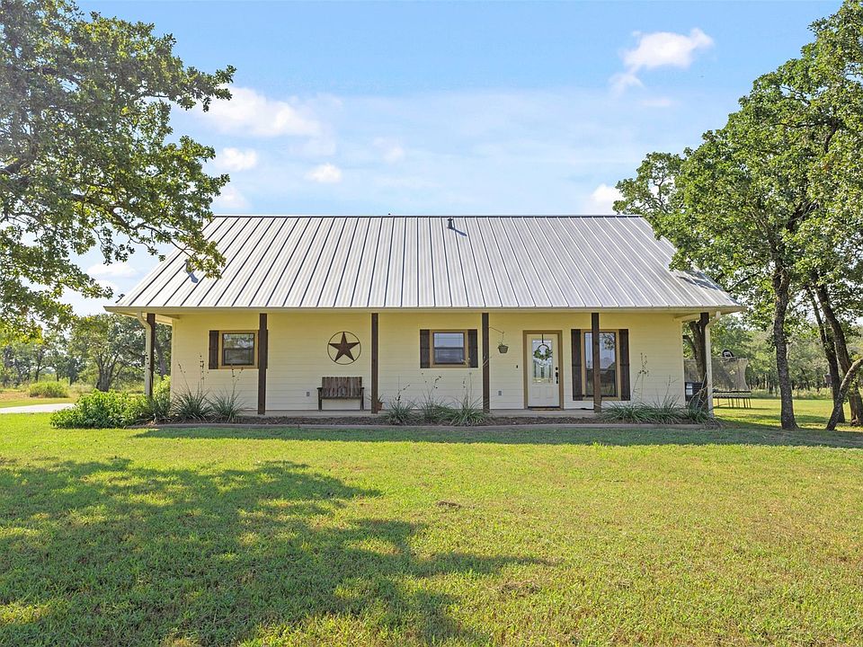 Welcome to your private retreat—25 ag-exempt acres just minutes from Lake Somerville. Stamped-concrete porches invite you to sip coffee and enjoy the peaceful surroundings. Built in 2012, this 3-bedroom, 2-bath home offers 1,853 sq ft of thoughtful design. Crown molding accents the downstairs, while natural light filters through wood blinds. The remodeled kitchen boasts custom cabinetry, double ovens, and an open layout connecting to bright living and dining areas. The downstairs primary suite features a walk-in closet and updated bath, while two upstairs bedrooms provide space for guests, family, or an office. A stand-alone laundry room with half bath adds convenience. Outdoors, enjoy a 1-acre stocked pond and hay-producing acreage with a contract in place. A 20'X40' shop with a half bath is perfect for projects, storage, or business use. With income potential, low-maintenance exterior, and a prime Hwy 36 location, this property blends charm, comfort, and convenience.