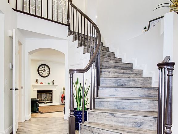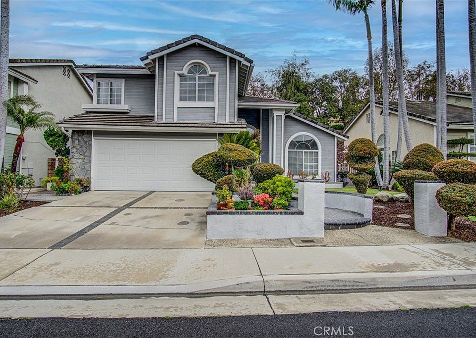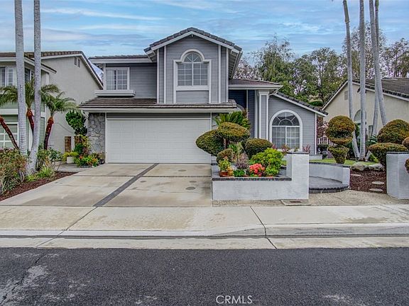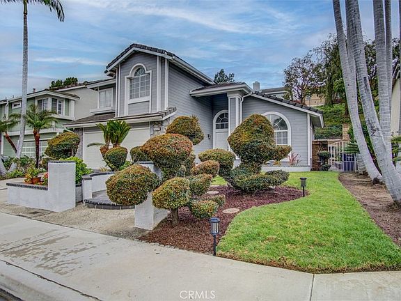 ABSOLUTELY STUNNING PROPERTY! It's a "10", best of the best! Current owner maintained the property in impeccably, immaculate condition! Nestled in the hills, located in the prestigious & popular La Mirada's Hillsborough "Heights" community. Quiet interior location, fabulous curb appeal; four bedrooms and 2.5 bathrooms. Upon entering you will find a perfectly flowing floor plan with abundance of natural sunlight. Dramatic cathedral ceilings with fantastic open floor plan, spiral staircase, gorgeous laminate flooring throughout. Impressive formal living room, and formal dining room opens to the backyard. Beautifully remodeled kitchen with black Corian countertops, tile backsplash, upgraded white cabinets, stainless steel appliances, garden window and recessed lighting. Updated half bathroom downstairs, inviting family room with tile flooring, crown molding and fireplace is the perfect spot for enjoying family and friends. Attractive master suite with vaulted ceilings, large mirrored closet door, dual sinks, marble countertops, full bathtub, nice tile flooring, spacious walk-in closet and sliding door leading to viewing deck for perfect relaxing. One of the three other generous-sized-bright bedrooms also have mirrored closet doors. Crown molding, upgraded light fixtures. Lots of windows make this property extremely light, bright and airy. Direct access to the two car garage. Fabulous tropical grounds! Professionally landscaped with lots of brick accent work. Awesome nice sized back yard and large sized side yard for perfect outdoor entertaining. Enjoy the Hillsborough Heights Association pool with your family and friends, which is conveniently located just around the corner, within walking distance. Very convenient location, close to shopping, restaurants, grocery markets and golf courses.