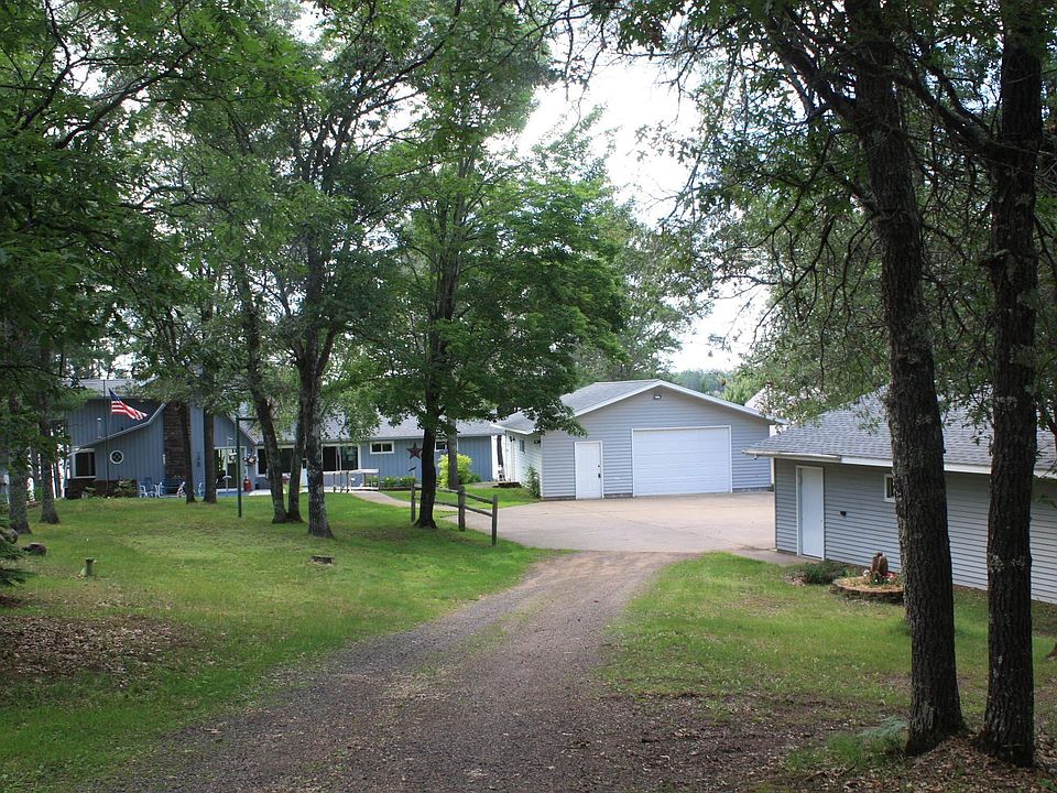 Here is a fantastic 3 bedroom, 2 bath home lake home on a beautiful wood filled lot on Person Lake in Wascott. This home offers all of the amenities that you desire featuring a large entry w/walk-in pantry and storage area. From the entry you can access the kitchen/office/den or spacious living room that features a beautiful gas fireplace w/floor to ceiling stone work and separate sitting area w/wood fireplace. Directly off the living room is the nice dining area and large kitchen w/lots of cabinets along w/immediate access to the front deck to enjoy your morning coffee. You will also find two nice sized bedrooms, one overlooking the lake w/convenient access to the front deck. The utility area is located adjacent to the entryway and bedooms. The upper level boasts a large primary suite overlooking the lake along with a large bathroom. Outside you will find the perfect beach with pure sand for swimming and all of your summer recreational activities. There are two detached garages with a large concrete apron between them. The garages and storage shed will allow plenty of room for your vehichles, boats and recreational vehicles! Person Lake offers fabulous swimming and fishing!