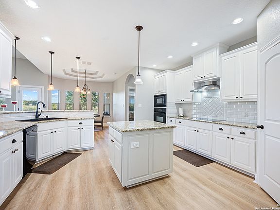 16026 Lake Shore Dr, Lytle, TX - On a peaceful 0.693-acre homesite backing to a private lake, this single-story, 2,152-sq-ft home delivers the Hill Country vibe with everyday convenience: a handsome stone/stucco elevation and covered entry, airy interiors with tray ceilings, a fireplace-anchored great room, and a bright white chef's kitchen featuring granite counters, double ovens, subway backsplash, abundant cabinetry, and an island made for gatherings-all oriented to backyard and water views that feel extra serene when lake levels are up. The smart split layout includes 3 bedrooms and 2 baths, highlighted by a private owner's suite with picture windows and a spa bath offering a soaking tub, separate shower, and generous vanity storage. Outside, you'll find room to breathe-space for a fire pit, garden beds, or a future shop-without paying gated-luxury premiums. Location is the win: Lytle sits directly on the I-35 South growth corridor, roughly 25 miles to Downtown San Antonio, giving you small-town ease with big-city reach to jobs, schools, shopping, and medical; the corridor continues to attract investment and rooftops, supporting strong long-term demand for quality homes with land and water access. If you've been searching "Lytle TX lakefront," "homes with acreage near San Antonio," or "move-in ready single-story," this checks every box-polished interiors, tranquil water backdrop, flexible outdoor space, and a value proposition that's hard to beat. Come watch the afternoon light dance across the lake, feel the open kitchen-to-living flow, and picture easy weekends on the patio as the water rises-then make it yours.