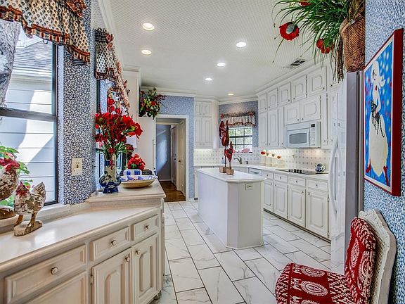 Located in Chalfont Place-with fantastic kitchen & more cabinets than most can fill, large pantry, double ovens & 2 refrigerators. Breakfast area & kitchen look out on atrium. Entry has pretty stairs,wood floors, crystal chandeliers, wet bar with ton of storage. Dining room-seats 12- has plantation shutters, custom draperies, custom wallpaper & beautiful crystal chandelier. Living den has fireplace, custom draperies & plantation shutters. Den-TV-Liv. has built in cabinetry & garden room has view of beautiful yard. Huge Master has fireplace & sitting area. Two bedrooms up, two hot water heaters, 3 HVAC Zones(two new)-roof, gutters, flagstone deck.