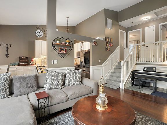 Gorgeous split-level end unit townhouse w/ 3 spacious beds & 2 full baths! Vaulted ceilings highlight the open floor plan, along with gleaming hardwood floors! Beautifully remodeled large kitchen with breakfast bar & loads of cabinet & counter space, breakfast nook with access to the brand new rear deck. Finished lower level has family room, bedroom & updated full bath! New windows in kitchen and bedrooms. Beautiful wainscoting walls in foyer and living room. Modern fixtures & paint tones complete the move-in ready home w/ 2-car garage!