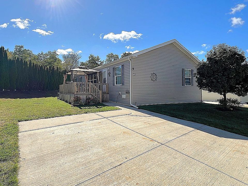 Welcome to this charming 1,456 sq ft manufactured home, perfectly situated on a wide perimeter lot at the end of a quiet dead-end street. Enjoy peaceful outdoor living in the beautifully landscaped yard featuring a large deck and a covered gazebo complete with shade and screen curtains — ideal for relaxing or entertaining.