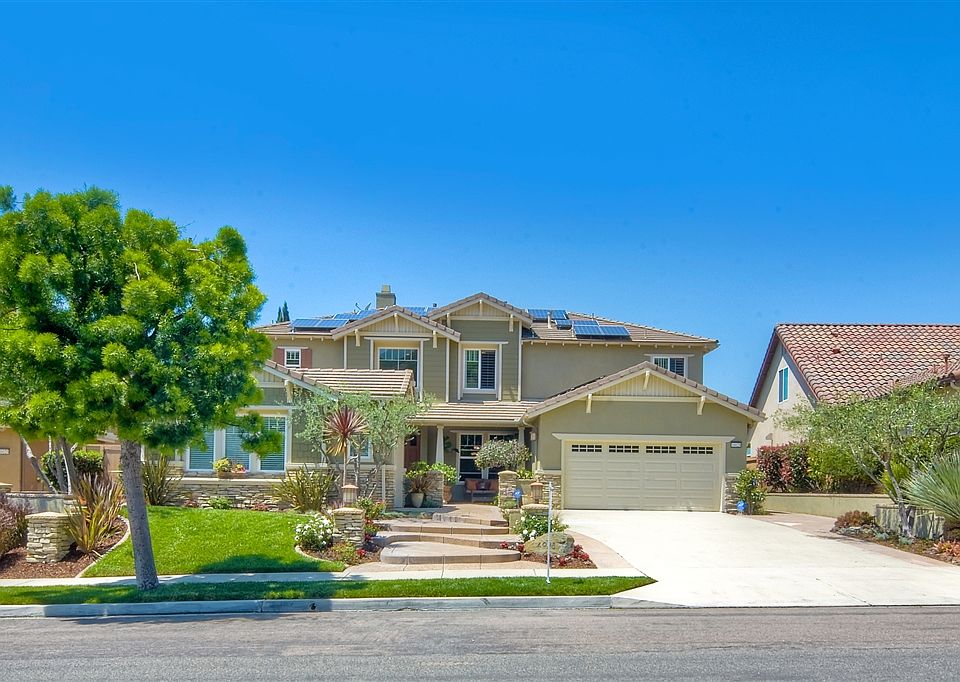 This stunning 4S Ranch 5 bedroom, 4.5 bath home welcomes you with flawless curb appeal. Beautiful stone work, concrete hardscape and impeccable landscaping usher you into an intimate courtyard. Walk thru the impressive front door into the two story entry way with custom tile design. On your left is an inviting guest room with a large wood-shuttered window, mirrored closet, new carpet and attached bathroom which includes a tub/shower combination.See Supplement....