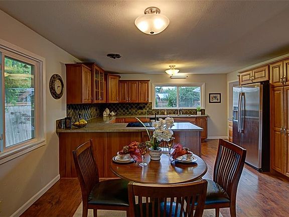 Mid-Century four bedroom 1 and 3/4 bath rambler has been tastefully transfromed and updated with today's modern conveniences. Wonderful great room with a wall of windows that provide lots of natural light, adjacent nook and kitchen featuring stainless appliances, cherry cabinets w/custom pull-outs, hidden spice rack & built-in pantry. Built-in computer desk, updated windows and flooring. Hampton fireplace insert. Fenced backyard with mature landscaping, alley access, RV parking, ductless heat pump.
