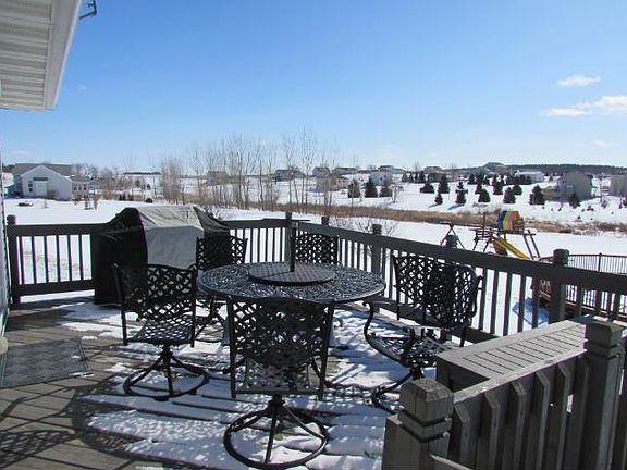 Welcome home to this beautiful three bedroom three bath home. Sitting on a 1.5 acre lot this home features mature pine and crab apple trees, recently planted shrubs and landscaping. New architectural shingles, stone ascents and maintenance-free vinyl siding. Inside you'll find a spacious tiled foyer and vaulted living room. Kitchen features maple cabinetry, peninsula with breakfast bar and cafe maple flooring. Dinning room walks out to large deck overlooking backyard. Large master bedroom with 3/4 bath and walk-in closet. Second bedroom and full bath. Fresh paint, carpets recently cleaned and upper level wired for sound. Walkout lower level features family room, large picture window, tiled entry, third bedroom and 3/4 bath.3 car garage., Directions: 94 to Hwy 65, north to US Hwy 12, East to 160th St., South to 89th Ave. West to home.