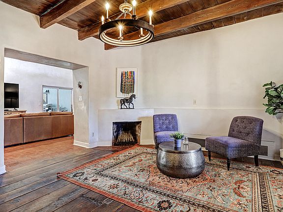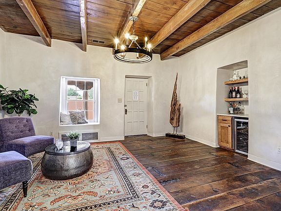 Old World North Valley Charm meets SW modern in ''The Candelaria House''. It is thought to have been built as part of the Los Candelarias Village in the mid/late 1800s before it became part of ABQ. Lovingly restored over time using reclaimed, period appropriate materials. It has handcrafted cabinetry, hand troweled plaster, reclaimed hardwood flooring, antique doors, & beamed ceilings that retain the character of the home that is built around a center courtyard. The primary suite has a wet bar, a free-standing tub, a walk-in closet with laundry, & a secret room. Updated kitchen with a professional stove & a butler's pantry. The casita has a full kitchen, bath, & bedroom with a separate entrance or enter through the main house. A detached office/studio with a/c. This home is a Rare Find!