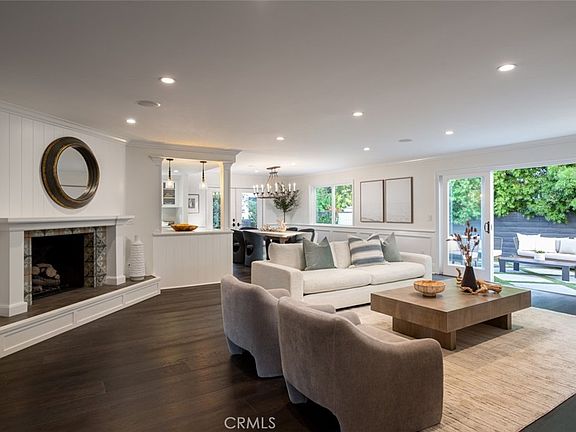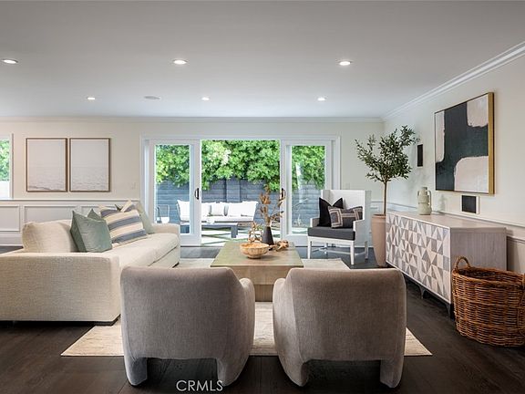 Located in the heart of Cliff Haven, Newport Heights' most coveted enclave, this exquisite home offers over 4300sf of remodeled living space, including five bedrooms and four bathrooms in the main home, as well as a detached studio with a separate entrance that is over 300sf. The main level features high-end finishes such as wide-plank oak floors, custom built-ins, and a tiled fireplace. The gourmet kitchen boasts stainless-steel Thermador appliances, a convection oven, walk-in pantry, and a buffet with a built-in wine fridge. A downstairs ensuite bedroom includes custom double bunk beds, plus an additional main floor bedroom with a walk-in closet and French doors that open to the motor court which could be an ideal office. The open floor plan extends to a backyard with custom turf and a unique pool/spa combo adorned with hand-painted Moroccan tiles. Upstairs, find a spa-inspired primary suite with a steam shower and soaking tub, two additional en-suite bedrooms, and a built-in office space adjacent to a balcony. An oversized family room on the second floor includes a fireplace, wet bar, and built-in surround sound. A charming Dutch door leads to a rooftop deck with stunning views. The gated front yard and oversized driveway make for an ideal outdoor play area. Modern amenities include a new HVAC system, instant hot water, recent vinyl fencing, and ample storage. Tastefully done, with generous spaces to spread out, and located only minutes from Newport Harbor, 17th Street, and all three local schools, this home leaves little to be desired.