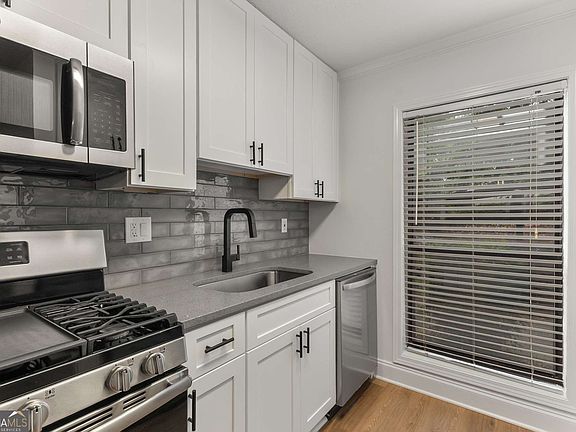 INVESTORS WELCOME! RENTAL PERMITS AVAILABLE! VA APPROVED COMPLEX! This all-new, move-in ready condo is located in a prime location, mins to the battery and shopping. Featuring a modern kitchen complete with shaker cabinets, quartz countertops, stainless steel appliances, a lazy Susan, breakfast bar with a view to the living room, and a pantry-it has everything you need to cook and entertain! A floor to ceiling window brings in natural light and completes the space. The spacious living room boasts a built-in bookcase, gas fireplace, and separate dining area. With hardwood floors throughout, this home is filled with natural light from the many windows. The oversized primary bedroom features two walk-in closets and an en-suite bath. For extra convenience, there's plenty of storage w/a coat closet, laundry room, and additional hall closet. Step out to the private patio, where you'll overlook the trees rather than the parking lot for a peaceful retreat. Brand-new HVAC system. Access to great amenities such as tennis, pickleball, basketball court, as well as two swimming pools. The HOA is strong, and the location can't be beat just minutes from The Battery/Truist Park, Silver Comet Trail, restaurants, shopping, and major highways (I-285/I-75). Don't miss out on this amazing opportunity!