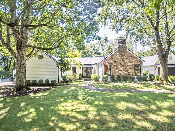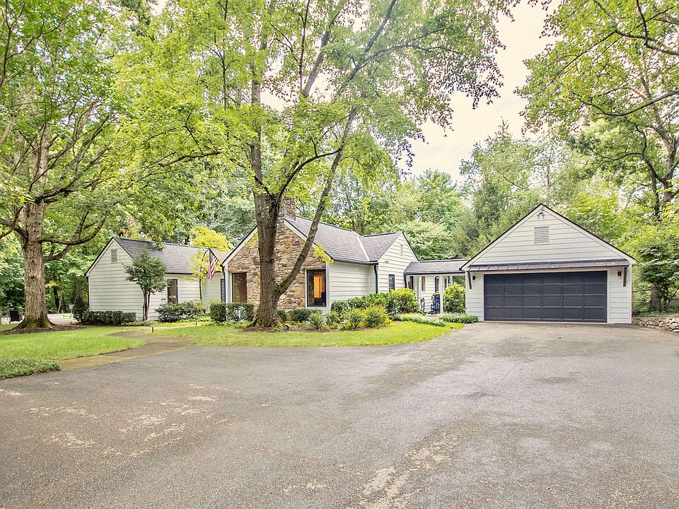 This charismatic contemporary ranch features a stone fireplace with gas logs in the living room, built-in cabinets, kitchen with granite counters, downdraft glass cooktop, breakfast bar, stainless appliances, family room with cathedral ceilings and access to the wood deck, sunroom with full view doors to deck, primary bedroom with custom built-ins, dual closets, and walks out to heated in-ground pool. 2nd bedroom with dual closets, office which could be used as 3rd bedroom, with built-in bookcases, murphy bed, 2nd full baths. Pool house with tile floors, 1 bedroom, 1 full bath. Covered walk-way to 2 Car Garage.