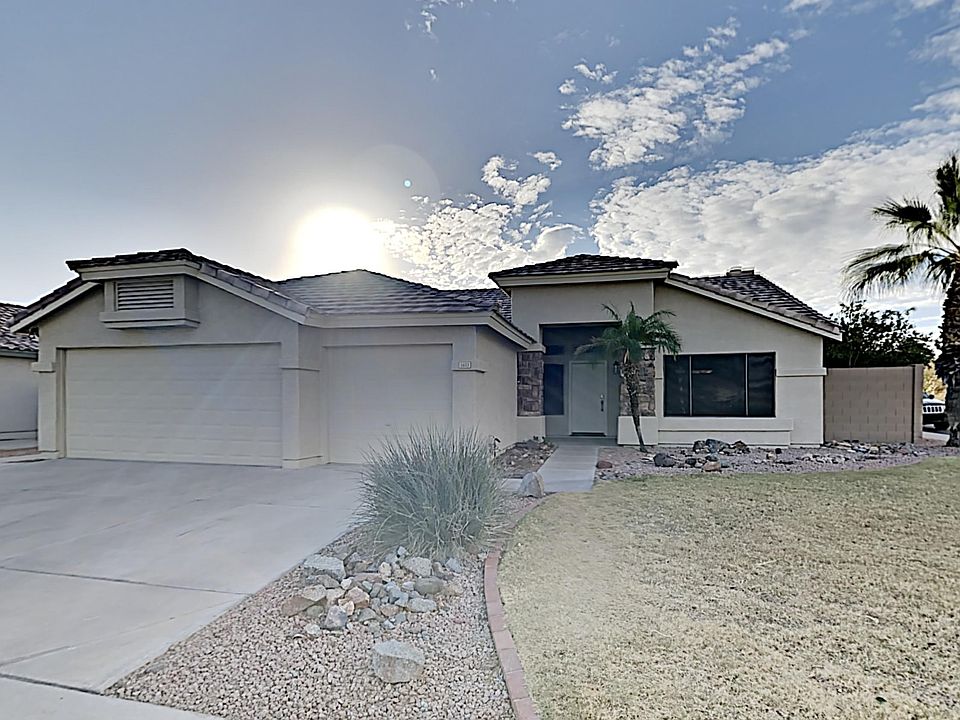 Don't miss this spacious single level home in Scarlett Canyon! This home has been refreshed with new exterior paint. Wood plank tile throughout all main living areas. Stone surround fireplace in the family room. The kitchen features granite countertops, an island for extra prep and storage, and new stainless steel appliances. Matching granite in both bathrooms. The primary ensuite bathroom has dual sinks, a separate shower and tub, and a walk in closet. The backyard boasts a covered patio, built in BBQ, and private pool. GREAT location near LOTS of Shopping & Dining. Also near, neighborhood parks, TONS of golf, LOTS of hiking and biking trails, and easy freeway access. Vacant and ready for viewing, come see!