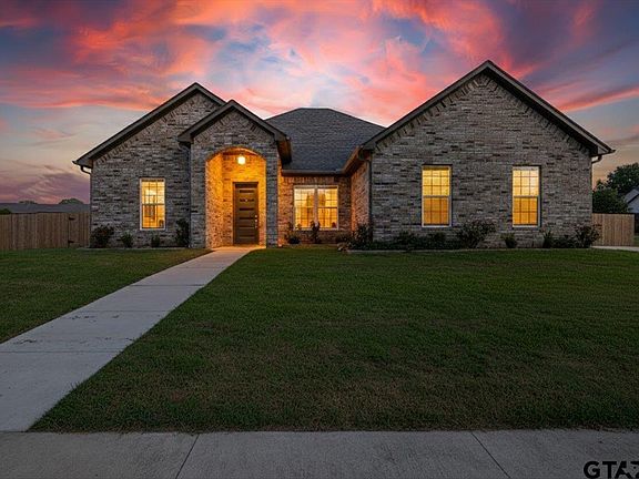 Stunning 2024 Custom-Built Home on 2.42 Acres – Luxury Living in Tyler, TX Welcome to this almost new 2024 custom-built home offering the perfect blend of modern elegance and thoughtful design. Situated on a corner lot spanning 2.42 acres (two lots total), this 4-bedroom, 3-bath home with an office features 2,550 sq. ft. of exceptional living space and high-end finishes throughout. Elegant Design & Spacious Layout- Step inside to an open-concept floor plan designed for both comfort and style. The large dining area flows seamlessly into the living space, highlighted by soaring ceilings and a beautiful electric fireplace. The home showcases gold and crystal chandeliers, adding a touch of luxury to every room. Chef’s Dream Kitchen- The kitchen is a showstopper, featuring granite countertops, a large breakfast bar, coffee bar, and top-quality finishes—perfect for entertaining or family gatherings, including a walk-in pantry. Luxurious Primary Suite & Guest Accommodations- The split-bedroom design offers privacy, with the master suite serving as a spa-like retreat. Enjoy a free-standing soaking tub, separate vanities, a walk-in shower, and a large walk-in closet. One guest bedroom includes a private ensuite, while the remaining two share a hall bath—ideal for family or guests. The laundry room off the kitchen is spacious with plenty of cabinets and counter space. Additional Features & Prime Location- An office provides a quiet space for those who work from home, and the 2-car garage offers convenience and storage. Outside, the expansive lot provides room to relax, garden, or even expand. Located just minutes from all the amenities Tyler has to offer, this home combines peaceful style living with city convenience! Come experience luxury, comfort, and space—all in one incredible home. Schedule your private showing today!