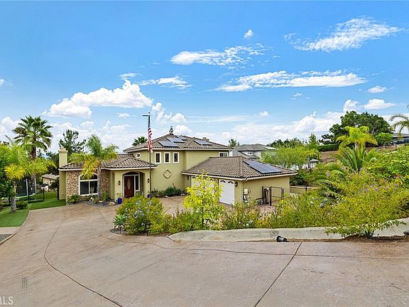 Welcome to your private retreat in one of Escondido’s most desirable communities! This stunning residence showcases high-end upgrades throughout, designed for both elegance and comfort. From the moment you arrive, the modern stamped concrete driveway and low-maintenance paver accents set the tone for the contemporary yet warm style of this home. A 3-car garage with an upgraded AC unit plus potential RV or boat parking offers plenty of flexibility for all your lifestyle needs. Step inside to discover an open, modern layout with custom touches everywhere. The family and living rooms are wired for surround sound, complete with smart wall switches for seamless control of indoor and outdoor lighting. The chef’s kitchen is a dream, featuring luxury finishes and perfect flow for entertaining. The primary suite feels like a five-star retreat, complete with spa-style en suite bathroom and a custom walk-in closet system designed for organization and style. This home is not only beautiful but efficient, with paid-off solar panels, tankless water heater, and a whole-house water filtration system. Outdoors, enjoy the extended paver patio with a stylish gazebo, perfect for entertaining or quiet evenings under the stars. Surrounding the property are fruit trees including mango, guava, cherry, citrus, lime, and avocado—your very own orchard. Additional upgrades include a walk-in wine fridge, modern lighting, and thoughtful storage solutions throughout. Every detail has been considered to create a home that balances luxury, technology, and convenience.