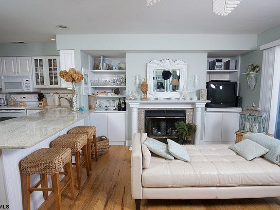 BAYFRONT HARBOUR COVE SOUTH w/deeded boat slip - premium location with spectacular view of Bay and Longport / Ocean City Inlet. Lots of updates -hardwood floors, custom fireplace mantle, shelving-renovated baths, marble floors, new heating and central air. Harbour Cove South is an upscale Somers Pt bayfront boating community just minutes from AC casinos & OC boardwalk & beaches; Amenities include pool, waterfront boardwalk leads to a gourmet restaurant w/outside deck dining, fishing pier, music concerts on the Somers Point Beach - all the joys of summer at the shore but none of the hassle!