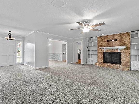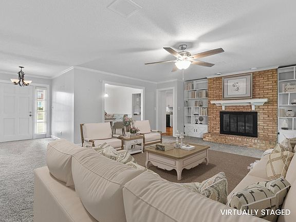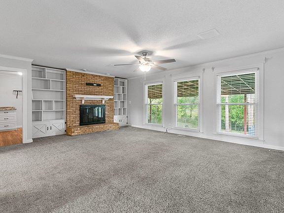This home lives large! 2017 sq.ft. livable and an additional 1079 sq.ft in finished basement. This 3 Bedroom, 3 bath brick home checks all the boxes. Spacious living room with fireplace perfect for cool nights. The kitchen has plenty of counterspace and cabinets, perfect for entertaining. Nice back patio perfect for watching the sunset. 2 car carport with plenty of parking. Huge basement with gaming/living area and office space and bath! Access to basement from inside and outside. AND outbuilding for extra storage! New roof added in 2022. This brick home truly is a must see with many possibilities. Close to Raleigh and Sanford. Your new home awaits! NO HOA!