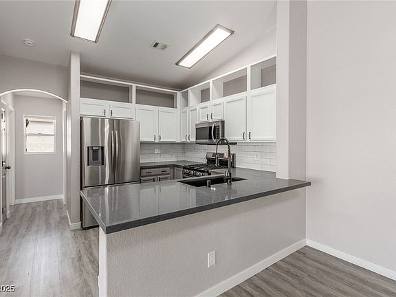 Stylish & Move-In Ready property. Welcome to 1603 Lefty Garcia Way, a beautifully updated townhouse offering the perfect blend of modern design and low-maintenance living. Fully renovated property better than anything else on the market.Step inside to an open, light-filled floor plan featuring laminate wood-look flooring that flows seamlessly through the main living spaces.kitchen is a showstopper w/ freshly painted white & gray cabinets, breakfast bar, sparkling quartz countertops, stainless steel appliances, creating the perfect space for cooking & entertaining. This 2-bed,2-bath hm offers comfortable, private retreats w/natural light. Baths are well-appointed, & hm has been meticulously maintained attached garage adds convenience.Gated comm. you’ll enjoy easy access to parks, trails, shopping, dining, & top-rated Henderson schools. If you’re looking for a turnkey, this home checks every box with its modern finishes and move-in ready condition.
