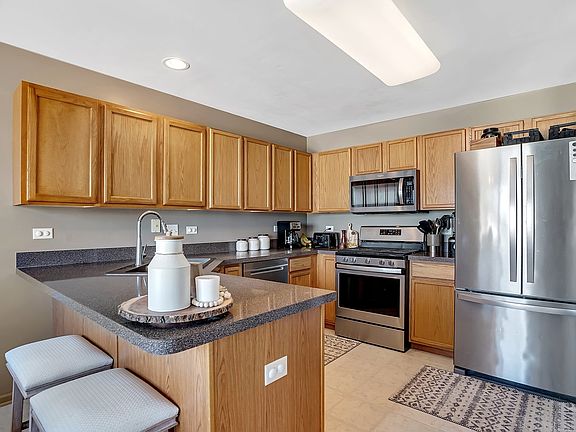 Discover this charming and spacious tri-level duplex featuring 3 bedrooms and 2 baths, perfectly situated on an expansive oversized lot! Highlights include a bright and airy living room with vaulted ceilings, and a delightful eat-in kitchen equipped with oak cabinets, full appliances, and a cozy dining area that opens to a low-maintenance deck. This deck overlooks a large, vinyl-fenced yard complete with a patio, shed, playset, a second deck, and a 21' round pool-creating the perfect space for summer fun! The generous master suite offers a walk-in closet, while the convenient second-floor laundry room adds to the home's practicality. The walk-out lower level is perfect for related living, featuring a family room, a third bedroom, and a full bath with radiant floor heating. Additional features include all new carpeting, new paint throughout, cleaned & re-sealed grout/tile throughout, new washing machine (approx 1 year old), ceiling fans throughout, 2-car garage, re-sealed driveway, and recently re-stained exterior deck. Too much to mention! Don't miss out on this gem!