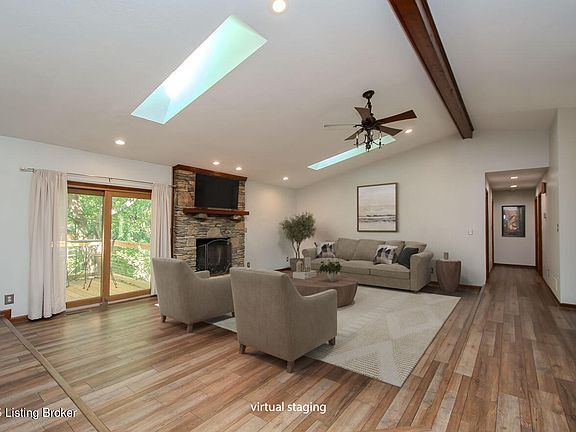 Enjoy lakefront living in this stunning ranch on a private court with gorgeous views and a private dock. Located in a beautiful lake community with boating, swimming, clubhouse & playground, this property also boasts a certified wildlife habitat with lush plants and flowers. Inside, the home has many updates including new flooring, fixtures, paint and a newer HVAC. Open floor plan features a wood-burning fireplace, eat-in kitchen and a dining area that opens to a new deck. The primary suite with bay window and double closets also has a remodeled en suite bath with tiled shower and soaking tub. 2 more bedrooms and a full bath complete the main level. The finished walkout basement offers a spacious entertaining area, 1 additional bonus room, bath and laundry.