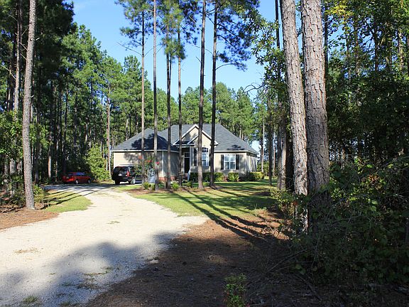 An efficiently sized single floor home located in the peaceful country (just a few miles from N.R. Goodale State Park). Surrounded by pine trees, this 2.63 acre lot provides privacy and views of nature. The full centipede lawn and irrigation system provides a robust and low maintenence landscape. The vaulted (12') ceilings (living room, Center bedroom, master bedroom, and master bathroom) provides style and a sense of openess. Remaining cielings are 9'. Walk-in laundry room. All appliances are included. See floor plan in the pictures for details. Cassatt Water. Black River Electric.