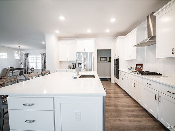 THIS HOME IS LISTED FOR $47,700 BELOW ITS CURRENT ASSESSMENT. FIRST FLOOR BEDROOM WITH FULL BATHROOM. WITHIN 15 MINUTES OF WESTCREEK AND 25-30 MINUTES TO DOWNTOWN RICHMOND. I promise you won't find a cleaner or nicer home than this one. The sellers put a lot of EXTRAS in this home when they bought it 2 years ago. They anticipated a multi-generational home. Life has a way of changing plans. This mature couple has owned several homes so they knew the small touches that makes living in a home enjoyable and not missing things that you wish you had. This home has it all! A lot of cabinets and shelving were customized and installed to be sure everything has its place. They include four custom closet systems, wood venetian blinds on all windows, glass shower doors in all baths. This massive home is meant for large families or recent retirees who want to live near their grandkids. Enjoy entertaining with the oversized kitchen, The quartz counter top, island, white cabinetry, Frigidaire Gallery Line appliances are spectacular! On bright beautiful days enjoy your coffee and the view from the covered deck with paddle fan just off of your kitchen morning room! If the sun is too bright enhance your view by using EasyShade (by SunSetter) retractable sunscreens. Of course the laundry room is on the second floor so you don't have to carry your laundry up and down the stairs. Enjoy his and her vanities and large walk-in closets in the King Size Primary Bedroom. To get an idea of the room layout on both the first and second floors, please review the attached floor plan rendering to better understand the flow and large room sizes this home offers. Some pleasant surprises include an asphalt paved driveway and garage combination designed to comfortably park 5 cars/trucks. Exterior added features include a small stone patio. About half of the rear yard is surrounded by a massive black aluminum column fence. Revwood Laminate Flooring in foyer, Dining Room, halls, kitchen, half bath.