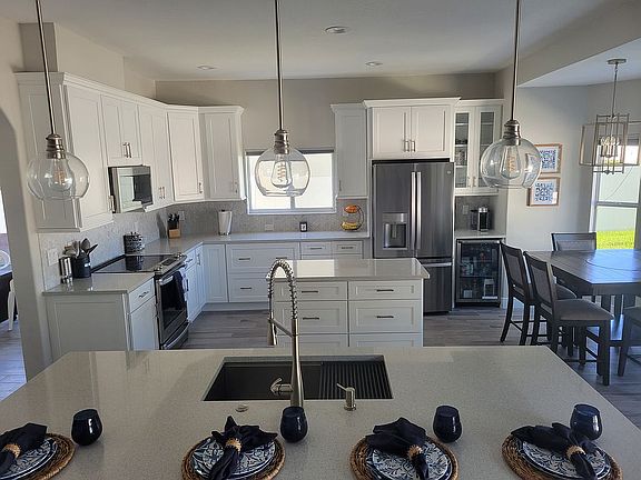 Absolutely Gorgeous Home Located In The Heart Of Trinity!! Completely renovated throughout and ready for a new family to call their own! Featuring 6 bedrooms, 3 full bathrooms, a 3-car garage, newly resurfaced solar & propane heated salt system pool & spa with pebble tech sheen finish and all new pewter traverstone pavers (2021). As you enter through the front door into the foyer, you'll notice that it is very light and spacious throughout. The interior walls have just been freshly painted throughout and has all new porcelain flooring throughout (the first level). The 6-tier chandelier in the foyer is also a new! The first level features formal living and dining room combo with a passthrough to the kitchen and family room. The kitchen is absolutely stunning and features all new GE Profile appliances plus beverage fridge, 42 soft close shaker style cabinets, custom pullouts, quartz countertops, a workstation sink with a new Moen Faucet, a breakfast nook & breakfast bar, and a walk-in pantry with frosted glass door and custom shelving. The family room is just off of the kitchen and has a new ceiling fan and a few custom cabinets. The first floor also has one of the six bedrooms with a murphy bed and a fully remodeled bathroom. All new baseboards have also been installed. The upstairs features all new freshly laid carpet with upgraded 8 lb. padding. This level features the master suite, 4 bedrooms, and the laundry room with wall-to-wall cabinet shelving and stainless steel sink. Washer and dryer are included. The master bathroom features large vanity with dual sinks, freestanding tub, triple shower head, and frameless shower door. The 6th bedroom has French doors and is perfect for a home office! All of the bathrooms have been updated and have new Kohler toilets with soft close lids and new Moen faucets and shower heads. The downstairs bathroom features a custom vanity, shower niche, and frameless shower door. Both AC units have been replaced within the past 3 years! There are also new ceiling fans throughout each bedroom and family room. This home also has a new tankless water heater, new smoke detectors, 8 wired security cameras around the home (included), new Levolor energy saving blinds throughout including electric blinds over sliding door, and ethernet wiring running upstairs in the office and in the pantry. As mentioned, the pool area has been completely redone and is perfect for watching the sunsets throughout the year! Thousand Oaks East is conveniently located to lots of shops and restaurants, schools, hospital, The Starkey Gap Trail and the Pinellas Trail, parks, beautiful golf courses, and is not too far from our beautiful beaches! Also, the community is located about 30-35 minutes to the airport!