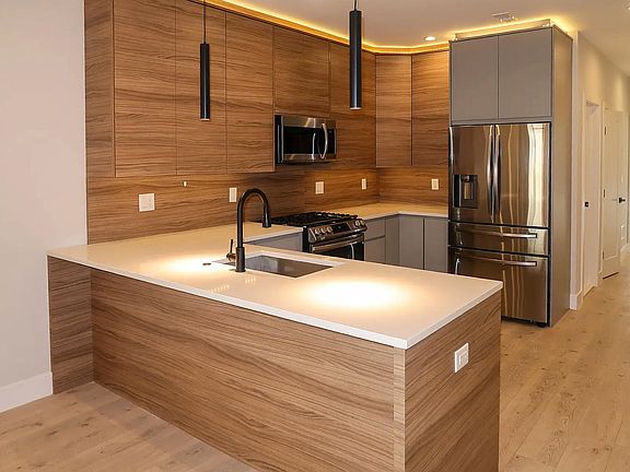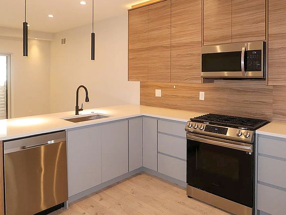 The kitchen is equipped with brand-new stainless steel appliances, while the home also offers in-unit laundry, central air, and a large private backyard for outdoor enjoyment.
