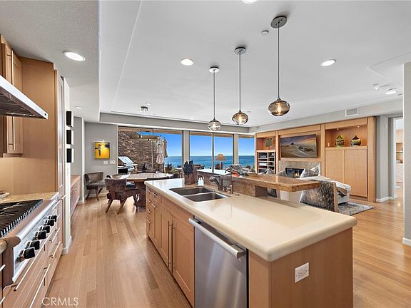 Ideally positioned at the water’s edge within an ultra exclusive, six residence oceanfront enclave, this premier lower level home offers unmatched access to the sand. Featuring an expansive 1,200 square foot deck mere steps to the shoreline, 1603 S. Coast Highway presents a rare opportunity to live in one of Laguna Beach’s most distinguished and one of a kind buildings. Designed by esteemed architect Morris Skenderian, the home features three bedrooms and two and one half baths spanning approximately 2364 square feet of extravagant living space. The open-concept gourmet kitchen and living room provide breathtaking panoramas of the Pacific and indoor-outdoor living from the unparalleled entertainer's deck complete with intimate fireplace and built-in barbecue. The lavish master suite opens seamlessly to the deck with dramatic views of Laguna's renowned coastline. The two guest bedrooms open to the side yard where you can store your paddle or surfboards after rinsing off in the private outdoor shower upon your return from the beach. Other highlights include an office, secured parking garage, and a communal courtyard that offers a bar, TV, barbecue, couches, fireplace, and more for resident gatherings or upscale private events. Additionally, the pristine grounds are maintained 5 days a week. Located where Bluebird Canyon Dr. meets the sand, this property's coveted setting in the heart of Laguna Beach is sure not to disappoint the most discerning of buyers.