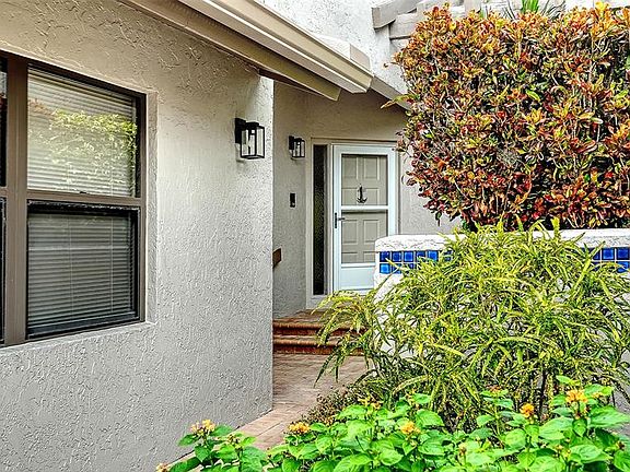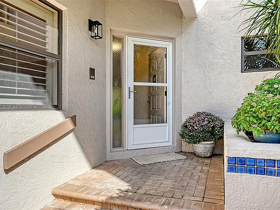Opportunity awaits in this desirable end-unit Coach House in The Landings. Light-filled and inviting, this ground-floor end unit offers serene views of Phillippi Park Pond and the feel of a private backyard. Enjoy low-maintenance tile flooring throughout and an open floorplan that seamlessly connects the updated kitchen with the living and dining areas. An adjacent glass-enclosed Florida room provides flexible extra living space and sweeping views of the outdoors. The spacious master suite features room for a desk or sitting area, two closets, along with a generously sized bathroom, and a large walk-in shower. A separate guest bedroom, full guest bath, and laundry room complete this well-designed home. Relax on the sunny back patio and enjoy peaceful views of nature. Perfect as a seasonal retreat or year-round residence. Ownership includes membership to The Landings Racquet Club with 8 Har-Tru tennis courts, pool, hot tub, fitness center, library, and social activities. This gated west of the trail community is a hidden gem, centrally located, yet private. Featuring mature landscaping, lakes, and a nature trail to a dock on the Intracoastal. Just minutes to Siesta Key, restaurants, shopping, and downtown Sarasota.