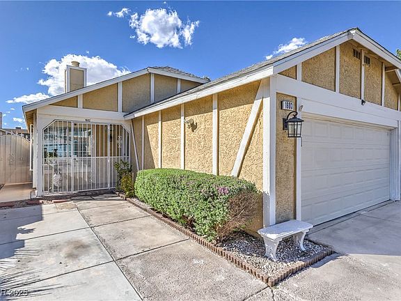 This charming single-story home offers 2 spacious bedrooms, 2 bathrooms, and 1,164 sq. ft. of thoughtful living space. Step inside to discover tile flooring throughout, with a layout that feels both cozy and functional. Experience comfort with a large HVAC unit that keeps things cool during the summer, OR turn on the gas fireplace in the living room for warmth and relaxation in chillier evenings. The kitchen features granite countertops, newer stainless-steel appliances, plenty of cabinet space, and a large counter that can function as a breakfast bar. Both bedrooms are generously sized and the two bathrooms allow guests their own space. Outside, enjoy your own private retreat with a covered patio for relaxing evenings or weekend BBQ gatherings. Rest easy with your low maintenance landscaping. Additional highlights include a gated front entry, a 2-car garage, and a newer roof. Located near shopping, dining, and amenities. Don’t miss your chance to make this Las Vegas gem your own!