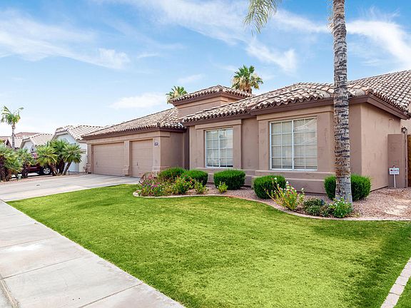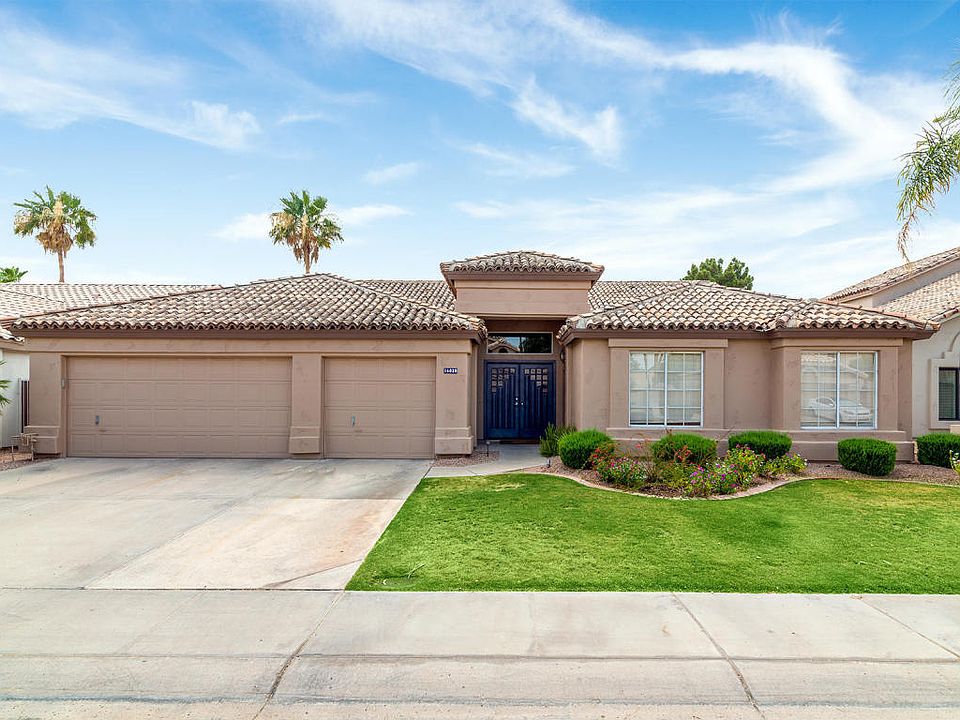 RARE FIND! Meticulously cared for single level home; 4 bedrooms, 2.5 bathrooms with THREE CAR GARAGE; backs to a PLUSH GREEN BELT in highly desirable Harbor Island! Backyard is perfect for families and entertaining, with a sparkling pebble tec pool, extended covered patio with additional patio area near pool, extensive kool decking (newly refinished,) custom built view deck at green belt, and gorgeous landscape. Wide-open feel from the back yard to the sprawling, well-manicured green belt! Enjoy relaxing sunsets from the main patio or the view deck. Extra tile patio installed 2017 (perfect location for a hot tub.) Kitchen boasts granite slab counter tops, custom painted cabinetry with brushed nickel hardware, stainless steel appliances including a high end double convection oven with oversized internal width. Blanco double sink, trendy lighting, island/breakfast bar and eat-in kitchen nook. Open kitchen-family room floor plan. Many options with this very open floor plan; two family rooms and a formal living room, or use one of the family rooms for formal dining. Gas fireplace in one of the family rooms. Soaring vaulted ceilings! Wood flooring ( installed 2016) and polished travertine flooring. No carpet in home! ! New designer mirrors and trendy crystal light fixtures in the master bathroom. Master suite has double sinks, a large walk in closet, separate shower with jetted tub an separate exit from master bedroom to back patio. Large secondary bedrooms. Upgraded light fixtures and trendy ceiling fans installed in 2017. 2017 water heater. Central Vac, security system, soft water system and drinking water filtration. New garage door opener and keyless garage entry. 2016 interior paint; Custom distressed-painted front door. Custom painted cabinets in bathrooms, laundry room and hallway. Custom touches throughout! Close to restaurants, shopping, hiking, Kyrene Schools, the I - 10, the 101 and 202!
