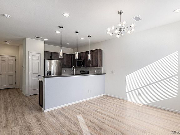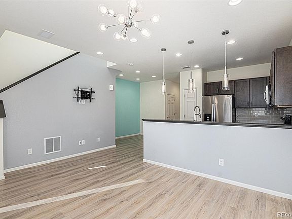 Step inside this beautifully maintained 3-bedroom, 3-bath townhome in Denver Connection West, where style meets smart functionality. The open floor plan on the main level welcomes you with luxury vinyl plank flooring and a modern kitchen complete with stainless steel appliances, a pantry, undermount sink, and sleek Corian countertops. The space flows seamlessly into the dining and living areas, perfect for entertaining or quiet nights in.