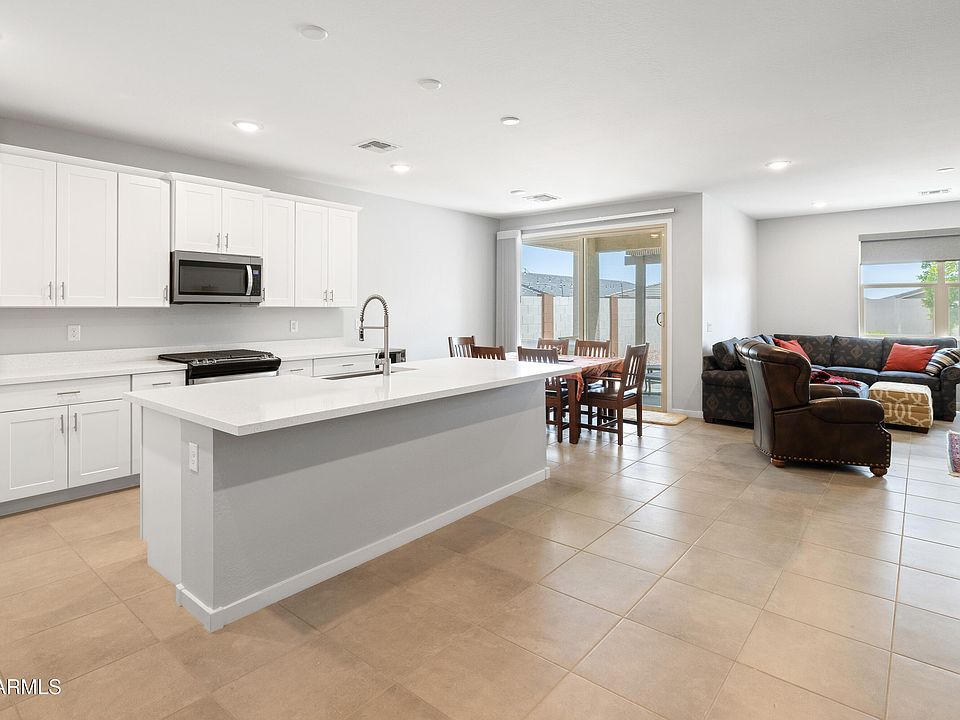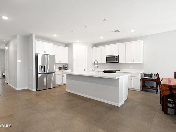 2023 Built Meritage Signature Collection at Paloma Creek with Massive Upgrades. 5.875% Assumable Loan**Ask For More Details** Upon Entry You Are Greeted With a Foyer, with Entry to 2 Bedrooms and Full Bath. Just Off The 3 Car Tandem Garage You will Find a Large Laundry Room with Built in Cabinetry, Granite Countertops and Utility Sink. The Paint Has Been Tastefully Upgraded Throughout the Home. The Massive Kitchen is Great For Entertainment and Gathering Around the Quartz Island. Tons of Cabinets, Walk In Pantry and All New Stainless Steel Appliances. Black Out Shades On All Windows to Keep the Home Cool in AZ Summers. Your Primary Suites Features Spacious Bathroom with Separate Tub and Shower, Dual Sinks, Separate Water Closet and a Generously Sized Walk- In Closet. The Backyard is