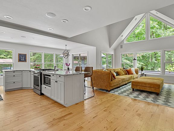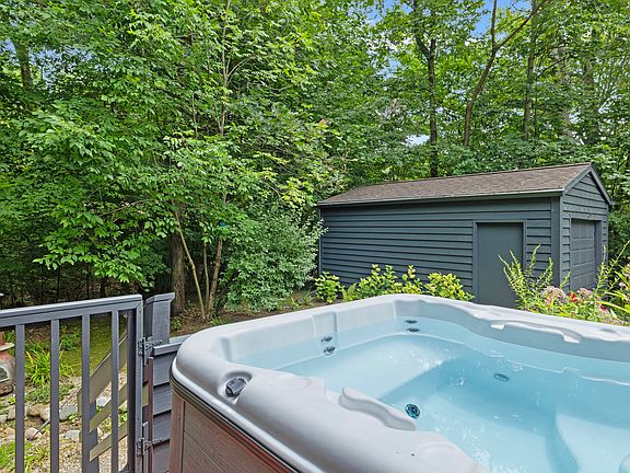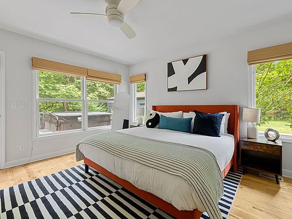 Stepping inside Gray Haven, you will find yourself immediately relaxing and breathing easy, given the spacious, rich atmosphere created by the vaulted ceilings and magnificent views of the surrounding woods, the pool, and large deck through the home's expansive windows. Add to that the breathtaking natural light and stylish, hand-selected furniture, artwork, and accessories, and you're living large!