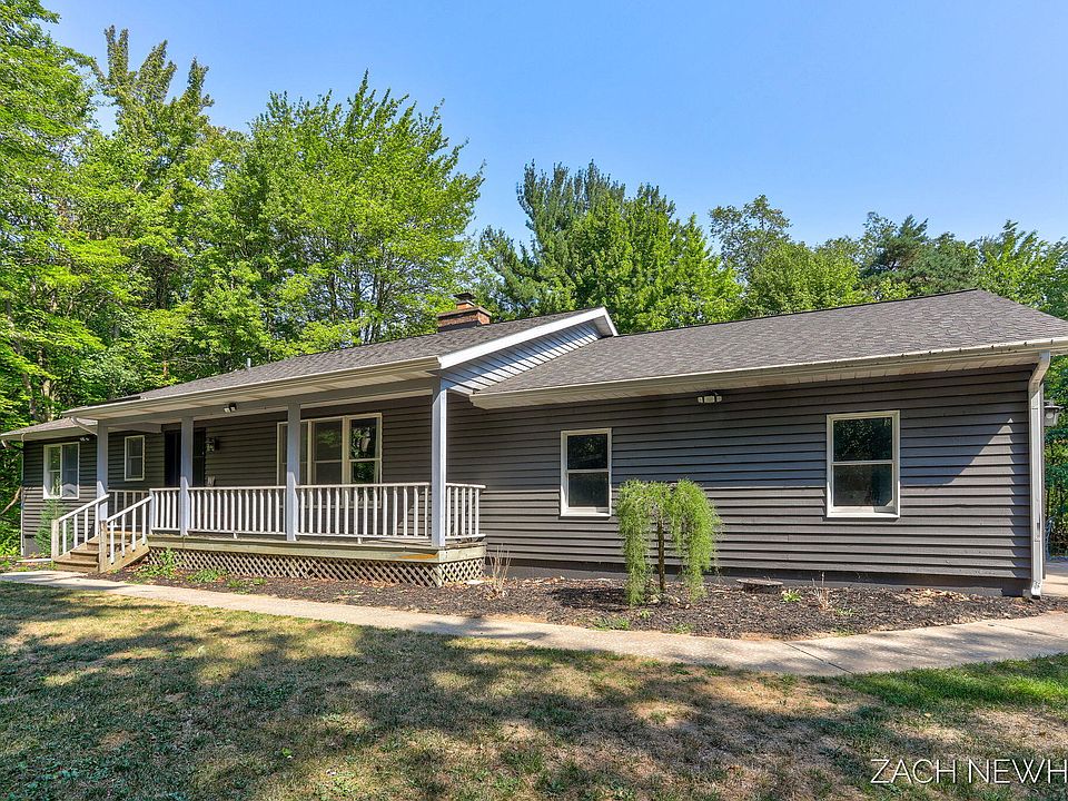 Opportunity here! 3.69 wooded acres just minutes from downtown Holland and 1.5 miles from Riley, Tunnel and Holland State Parks. 2 bed 2 bath ranch with a cozy fireplace, attached 2 stall garage plus a 3rd used as a heated work shop. Lower level daylight is 1/2 finished with a rec room 3rd bedroom and space for another bed/bathroom.