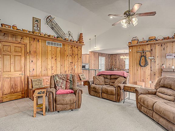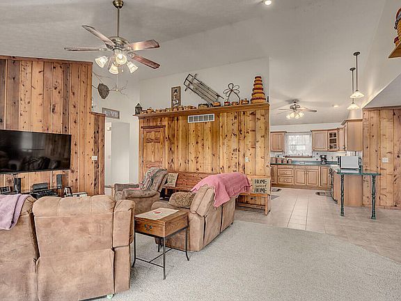 Retreating to the country never looked so good. Bring your horses or livestock to this mini farm on over 4 acres with a pond and 3/4 stall barn w/hayloft on the back with of the newly built detached garage. This 30X64 building was built with a 30x40 shop with 200 amp service, water. The ranch home has three bedroom, large open living area from living to kitchen and dining area. soaring ceilings with stone fireplace and real pine paneling give this home the comfort you are desire. The lower level is a walk-out with a full bath and plenty of finished living space. There is a 2 car attached garage and outdoors is a dream for all. Shed in back yard will not remain.
